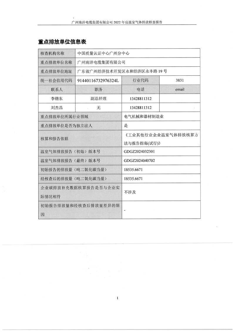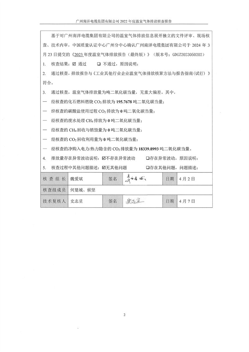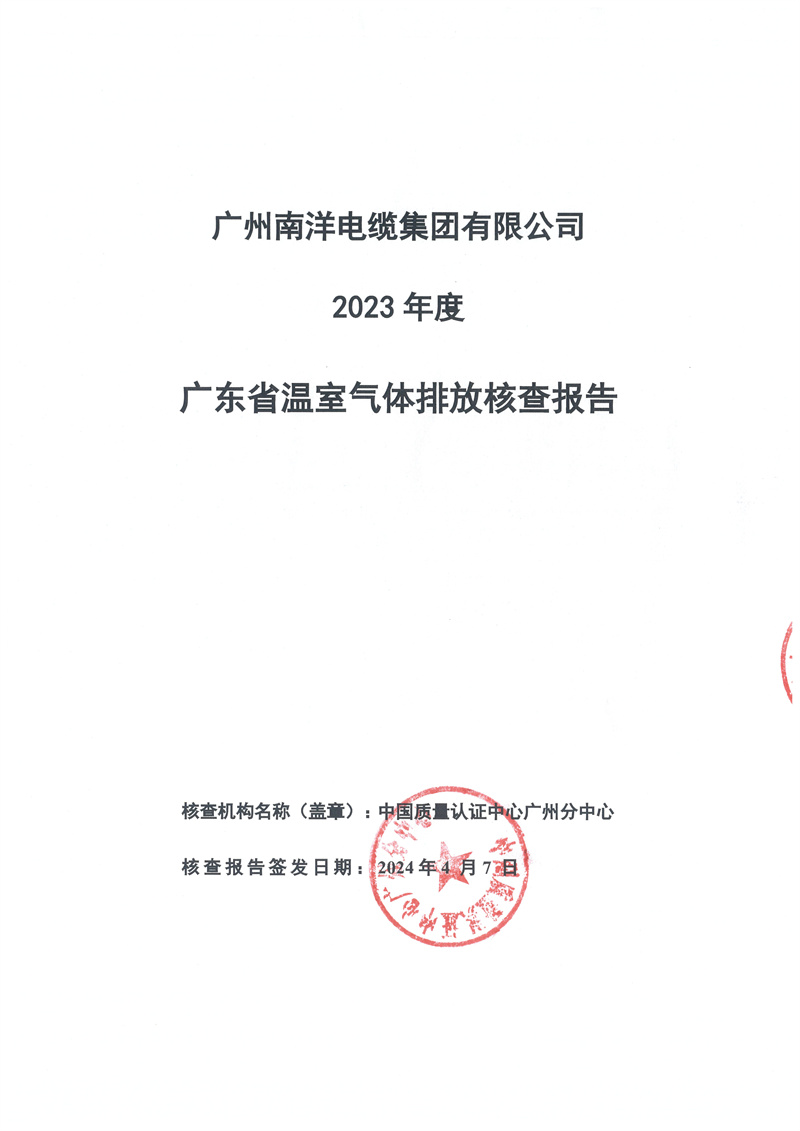 广州BB贝博艾弗森官方网站电缆集团有限公司2023年度广东省温室气体排放核查报告